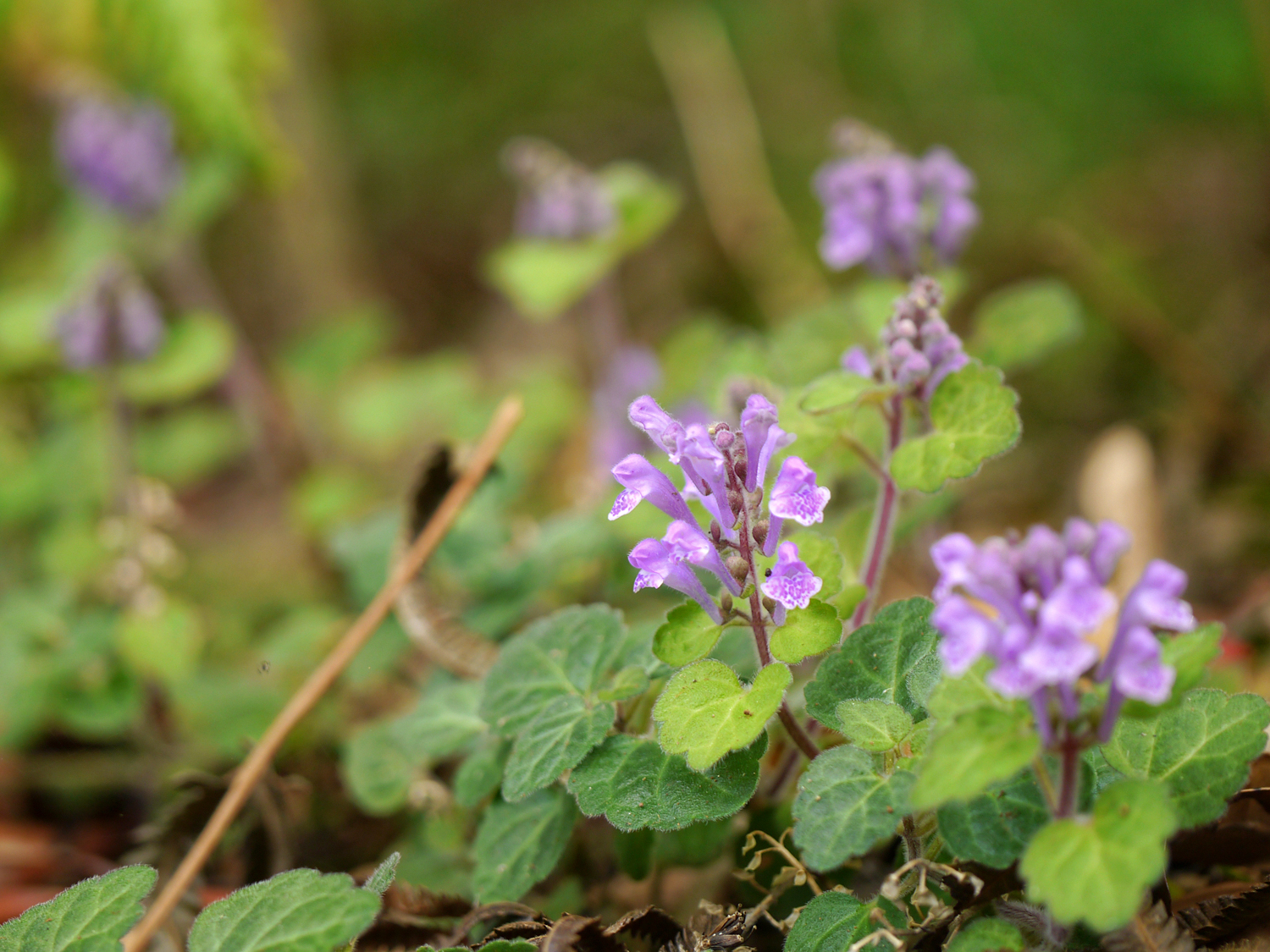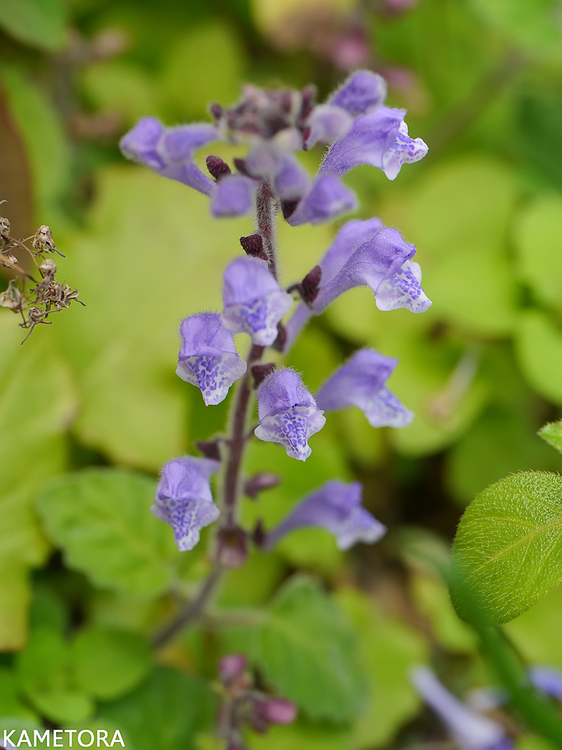 奄美大島に咲くアカボシタツナミソウ(学名: Scutellaria rubropunctata)。 葉の裏に輝く「赤い星」のような美しい腺点が特徴のシソ科の草花です。林縁や沢沿いで見つける観察ポイントを解説! 形態的特徴(花・葉・茎): 花: 1.3〜1.5cmほどの淡紫色〜青紫色の筒状花(唇形花)。花冠には目立つ紫色の斑点がある。同じ方向に並んで咲く。 葉: 長さ1〜6cmの三角状卵形で対生。裏面に密生する「赤褐色の腺点」があり、これが夜空の赤い星のように見える(名前の由来)。 茎: 白色の細毛が密生している。 分布域/生育環境: 種子島、屋久島から奄美大島、徳之島、沖縄諸島(南西諸島固有種と考えられてきたが、近年四国地方の山間部でも確認)。 低地の林縁や草地、沢沿い、石垣など適度な攪乱がある環境に生育する。 花期: 1月〜5月頃(南西諸島) 奄美特有情報: 奄美の名前を冠した変種「アマミタツナミソウ (S. rubropunctata var. naseana)」が存在しているらしい・・・が見分けがつかない!!!