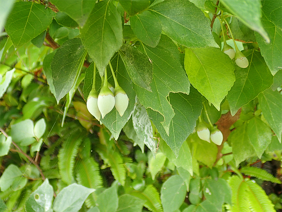 奄美の春に白い釣鐘形の花を咲かせ「森のシャンデリア」と呼ばれるエゴノキ(学名: Styrax japonicus)。 えぐみのある果実と野鳥ヤマガラの関係や、バナナのような形の虫こぶ、そして和傘の材料など、暮らしと自然を結ぶ興味深い生態をご紹介します。 形態的特徴(花・葉・茎): 枝はジグザグに屈曲して伸びる(仮軸分枝)。 葉は卵形から長楕円形で互生。 春に枝先や葉の付け根から白い星形・釣鐘形の花を下向きに多数咲かせる。 分布域/生育環境: 北海道南部から本州、四国、九州、沖縄にかけて全国的に分布し、国外でも東アジアの温帯〜亜熱帯域に自生。 比較的水分のある谷沿いや山野の雑木林などに自生する。 その他の特徴: 果皮に「エゴサポニン」という有害物質を含み、「えぐい」味がすることが名前の由来。 野鳥のヤマガラは種子を食べるため散布に貢献し、材は和傘の必須部品である「ろくろ」や将棋駒に使われるなど、自然や文化と深い関わりがある。