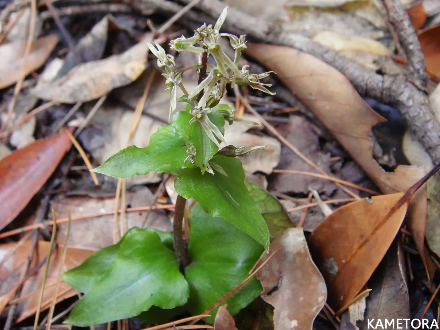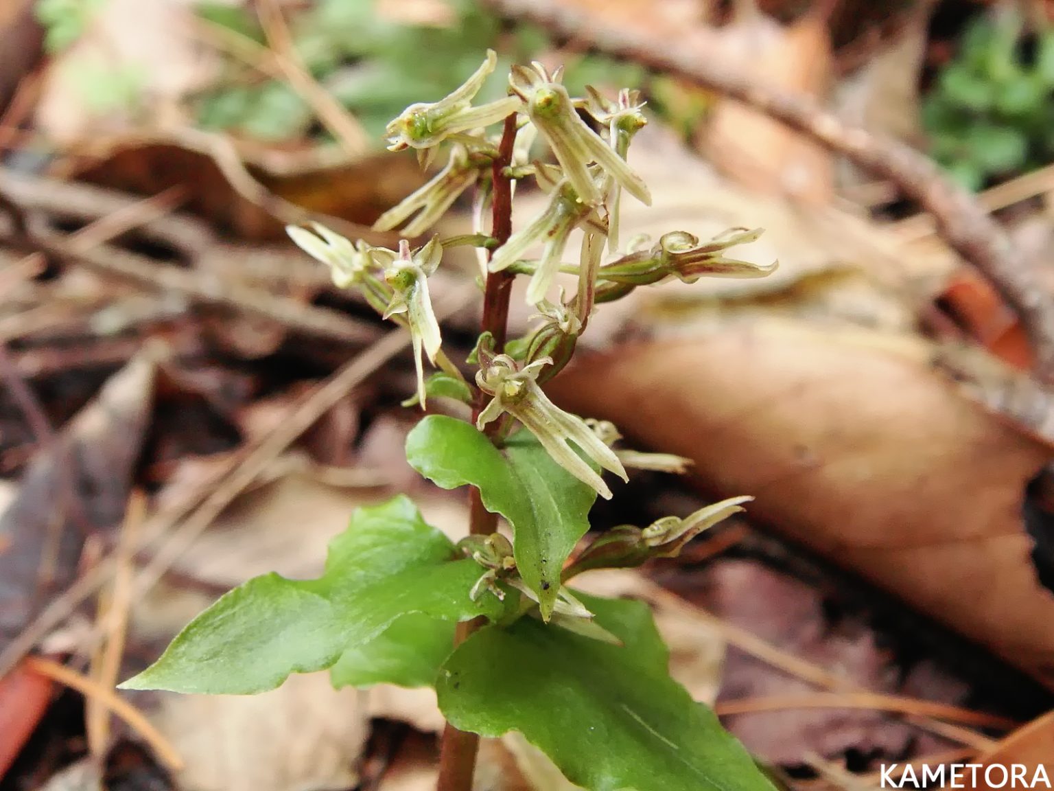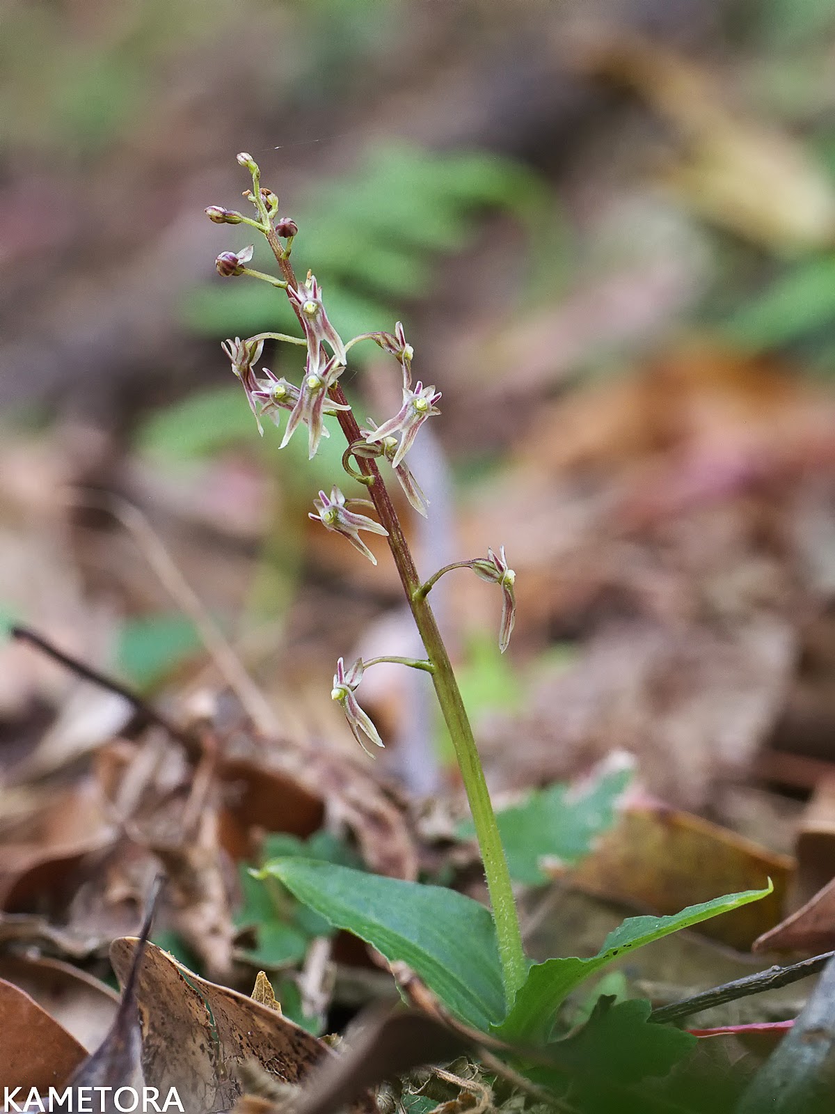 美大島の冬の森でひっそり咲く野生蘭「ヒメフタバラン(学名:Neottia japonica)」。 唯一の南方系フタバランで、沖縄などでは12月〜2月頃に開花します。 逆Y字形に裂けた独特な唇弁をもつ淡紫褐色の小さな花や、対生する2枚の葉といった外見的特徴と観察ポイントを詳しく解説! 形態的特徴(花・葉・茎): 葉:茎の中央付近に1〜2cmほどの卵状三角形の葉が2枚向かい合って(対生状に)つく。 茎:四角形で、葉より上の花茎には腺毛が生える。 花:淡紫褐色の小さな花が1本の花茎に2〜6個咲く。逆さまの状態で咲き、唇弁が長さ6〜8mmで先端が深く「逆Y字形」に裂ける。 分布域/生育環境: 本州(宮城県以南)から四国、九州、沖縄、韓国(済州島)、台湾。主に暖地の常緑樹林(照葉樹林)や湿った林床。日本に自生する唯一の「南方系」のフタバラン。 花期: 本州では3〜5月、奄美や沖縄などの南の島では12月〜2月頃の非常に早い時期。 奄美特有情報(方言・利用法・等): 本州とは異なり、南の島ならではの「冬場の非常に早い開花」を観察できるのが大きな特徴。